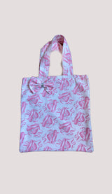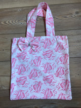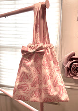 Made from soft cotton fleece, the Ballet Bag has 2 soft straps for over the shoulder carrying, hidden elastic that can be pulled to keep items secured inside, and is decorated with one of our signature bows.