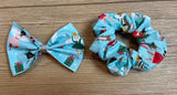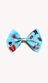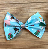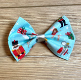 This hair bow features our new pastel nutcracker fabric with a metallic silver center.