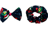 Our favorite characters really stand out on a black background. Choose to bring home a hair bow or scrunchy or both! Merry Grinchmas!