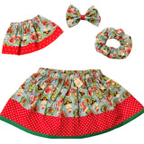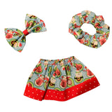 Choose a hair bow or a scrunchy. Pairs perfectly with the Santacado skirt.