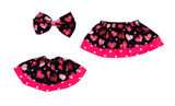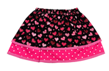 Your little girl will LOVE our special VALENTINE'S SKIRT. Laden with pink sparkly hearts on a bold black background, this skirt will make your little one the envy of all the girls in class!